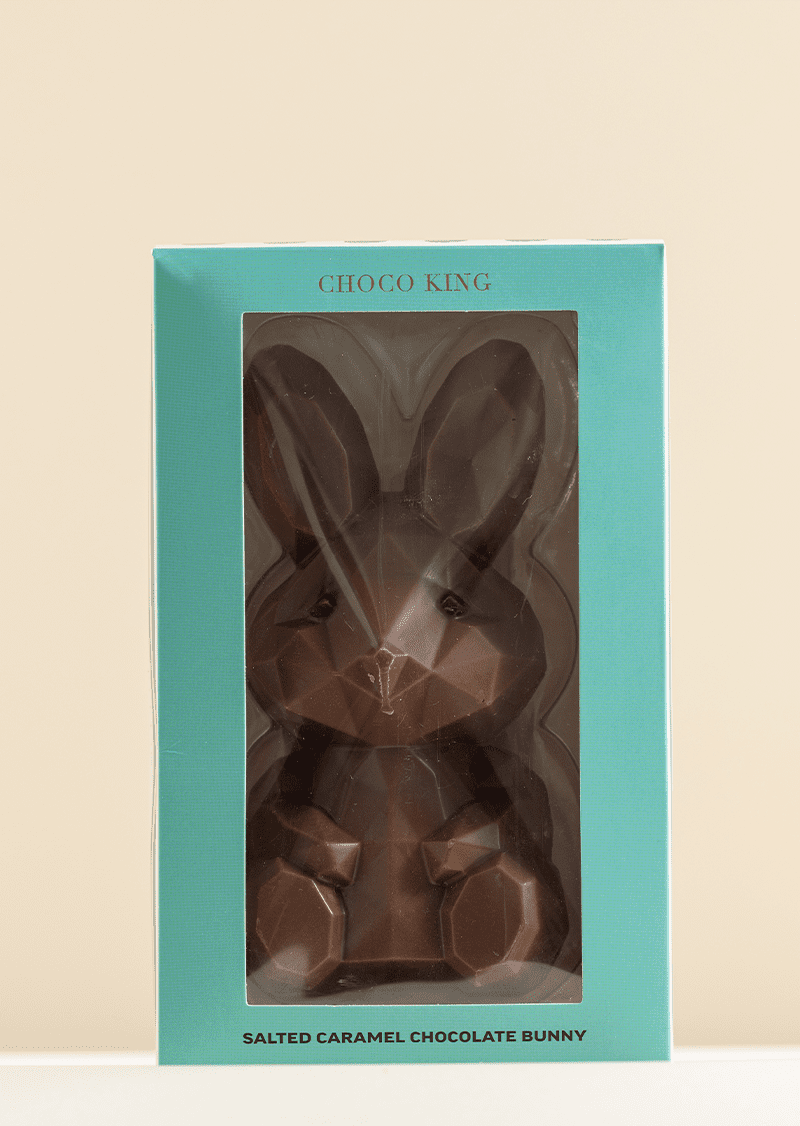 Served in a chic, reusable rigid box, with PVC displays, this original Salted Caramel Bunny makes a spectacular gift for a loved one this Easter.