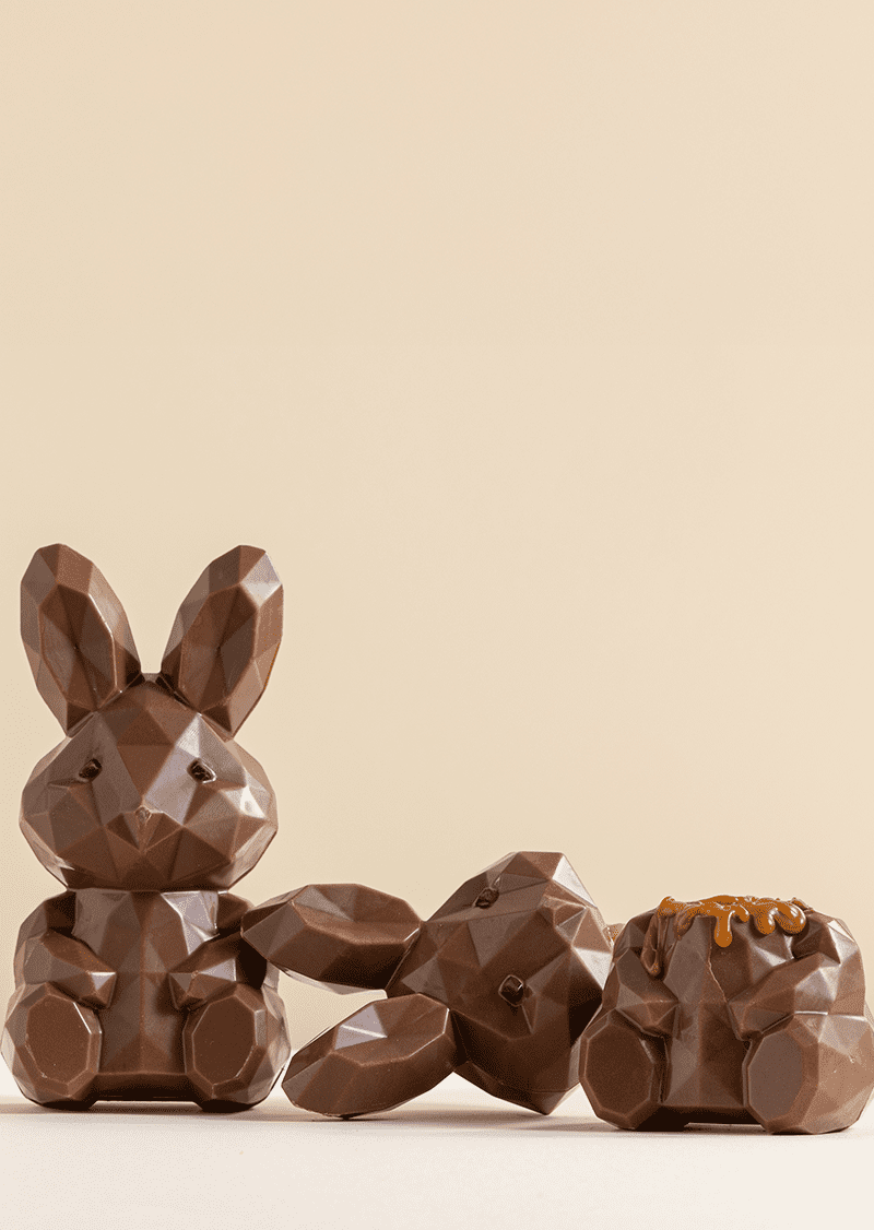 Meet Roger : The Salted Caramel Bunny. This one will drive everyone crazy. Our unique diamond chocolate bunny filled with our iconic Sea Salt caramel is this Easter’s most delicious gift.
