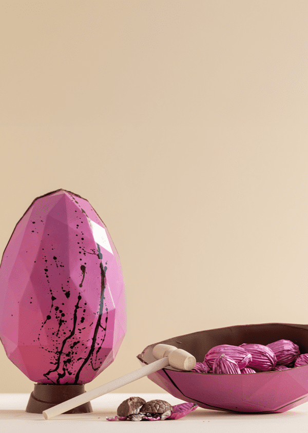 One for the grown-ups or even little ones with elegant attitude, Your Eggsellency is a truly opulent Easter delight. The Pink Diamond Egg is made exclusively from Choco King’s finest milk chocolate 35% cocoa and it’s filled with our best seller for decades : Mini Milk Chocolate Eggs. It is the perfect way to experience the joys of feminism and elegance. Presented in a gorgeous reusable pink package, it makes an excellent gift for a loved one — or a tipsy treat for yourself.